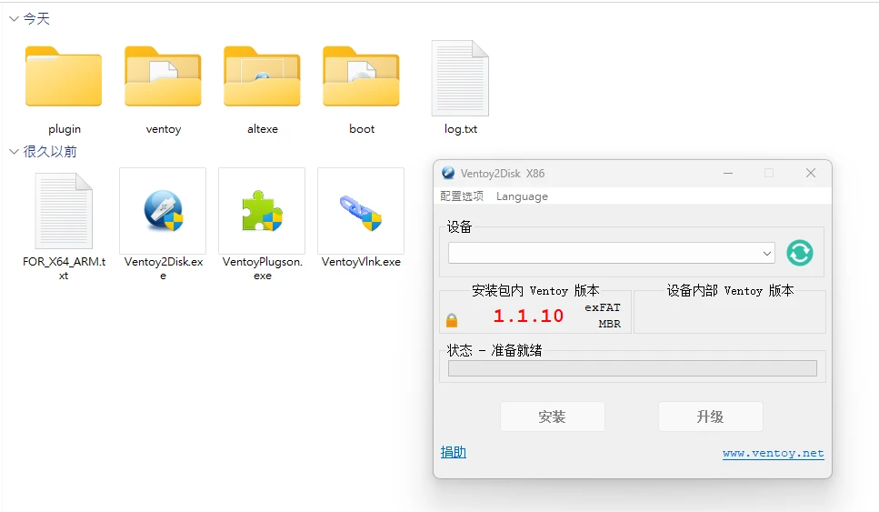 Ventoy隨身碟安裝完成後,重新插入電腦,應會看到二個分區: