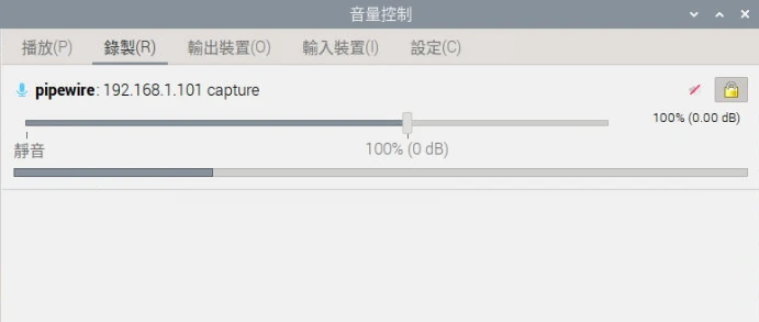 - 在Linux開啟pavuconttrol程式,觀察音訊輸出。有PulseAudio客戶端連線的時候就會跳出capture。