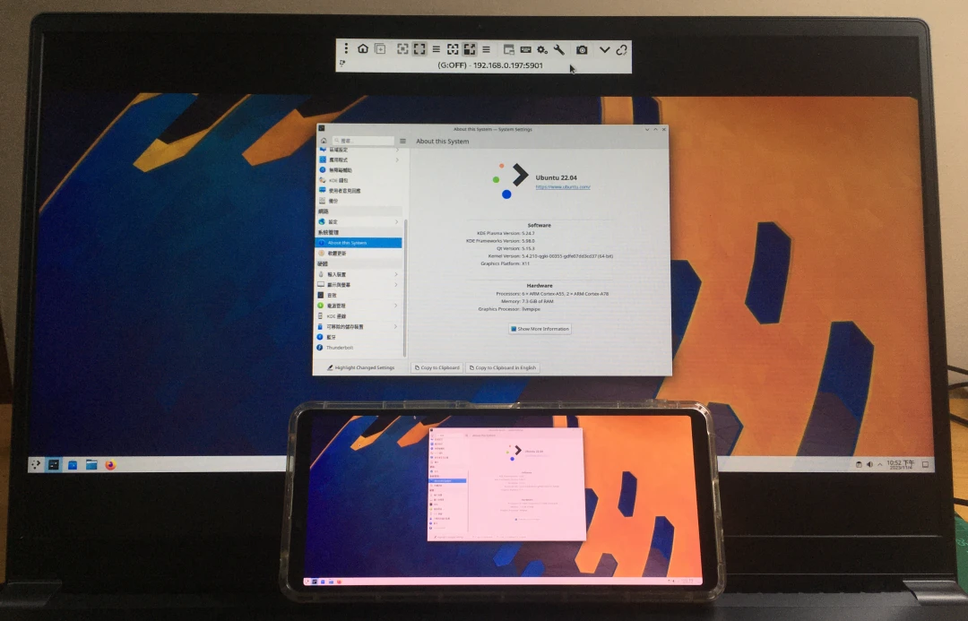 所以VNC適合「用電腦連線到手機Termux桌面」的場合,你不喜歡盯著小螢幕狂打指令對吧。那麼除了純文字SSH存取外,圖形化的VNC就是好選擇。
