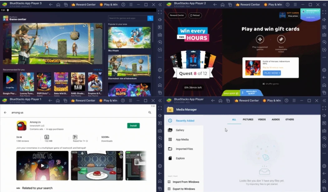 「多開」遊戲,一個畫面同時執行多款不同的遊戲。