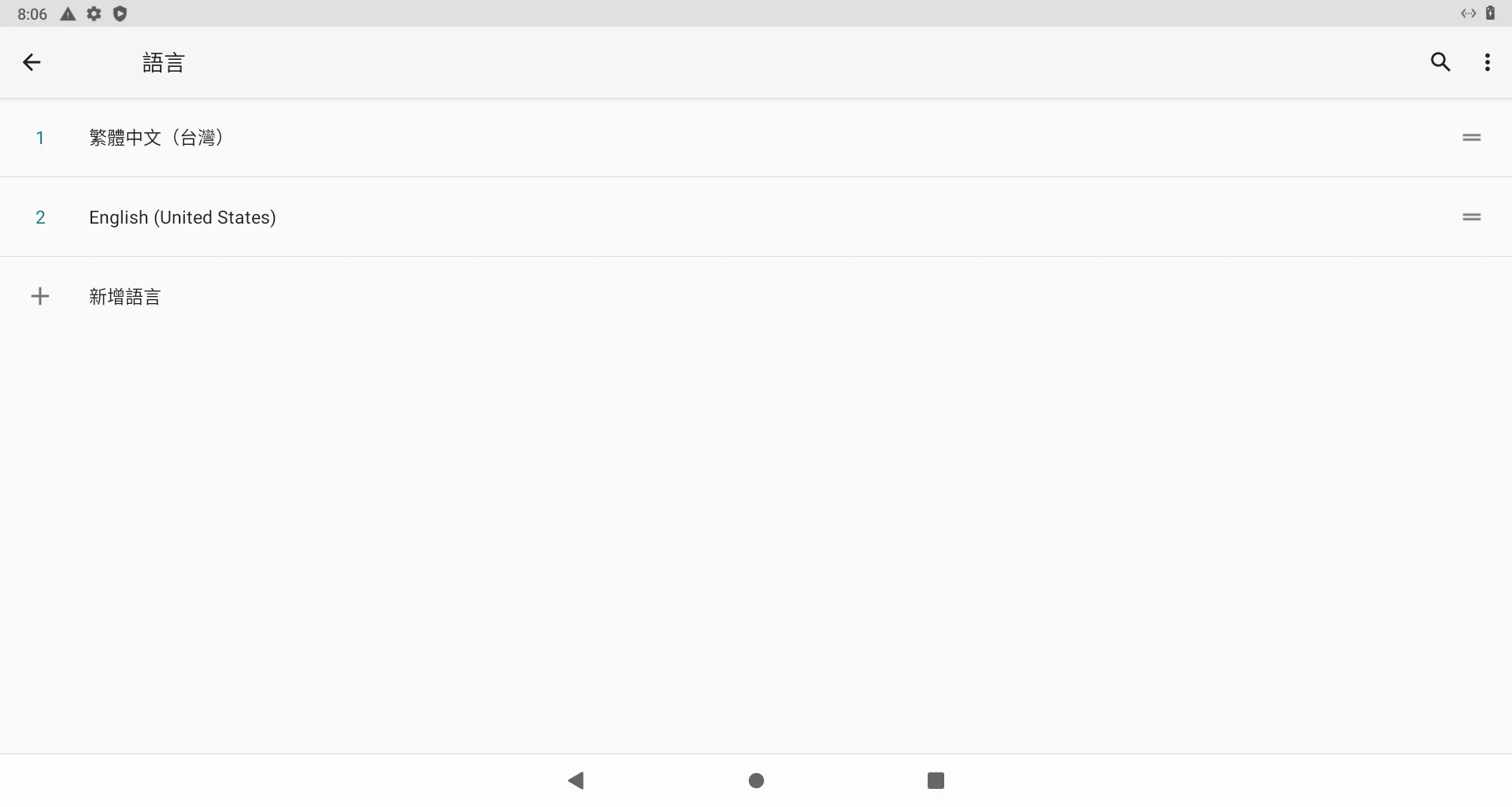 在Android的界面開啟Settings → System → Languages,加入中文,並將滑桿拉到最上面。
