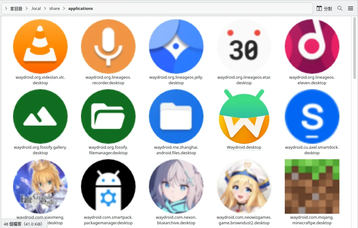 Waydroid的Android APP圖示位於~/.local/share/applications/waydroid.*