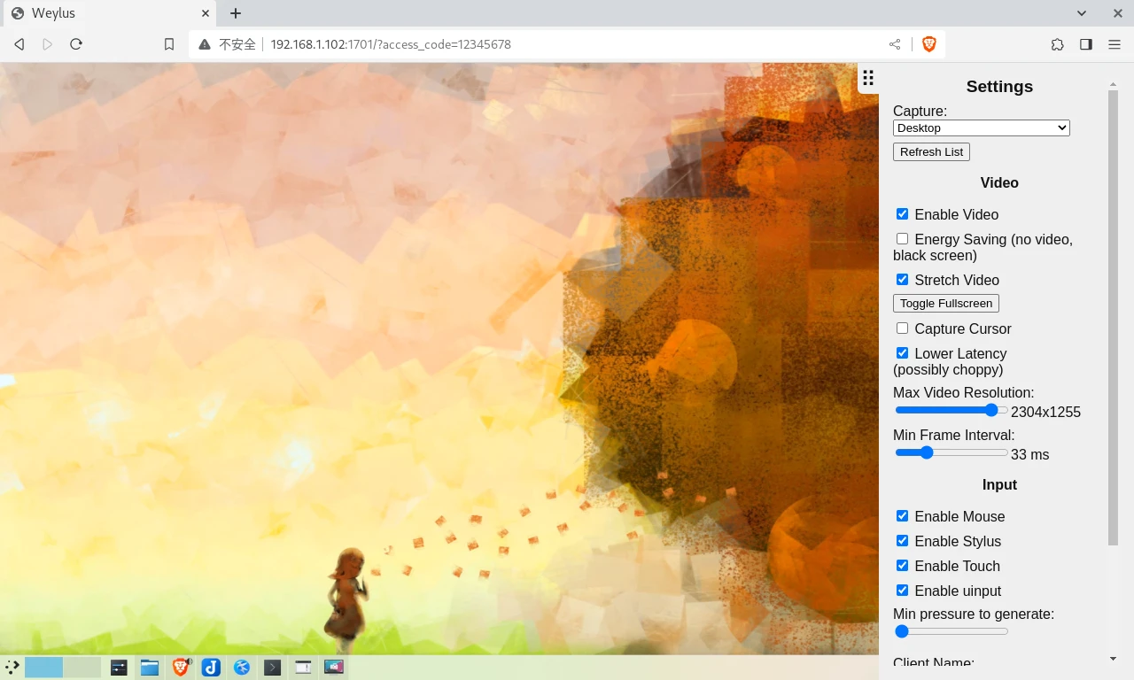Weylus無線使用上還是有點延遲,在網頁端降低解析度或許會有幫助。