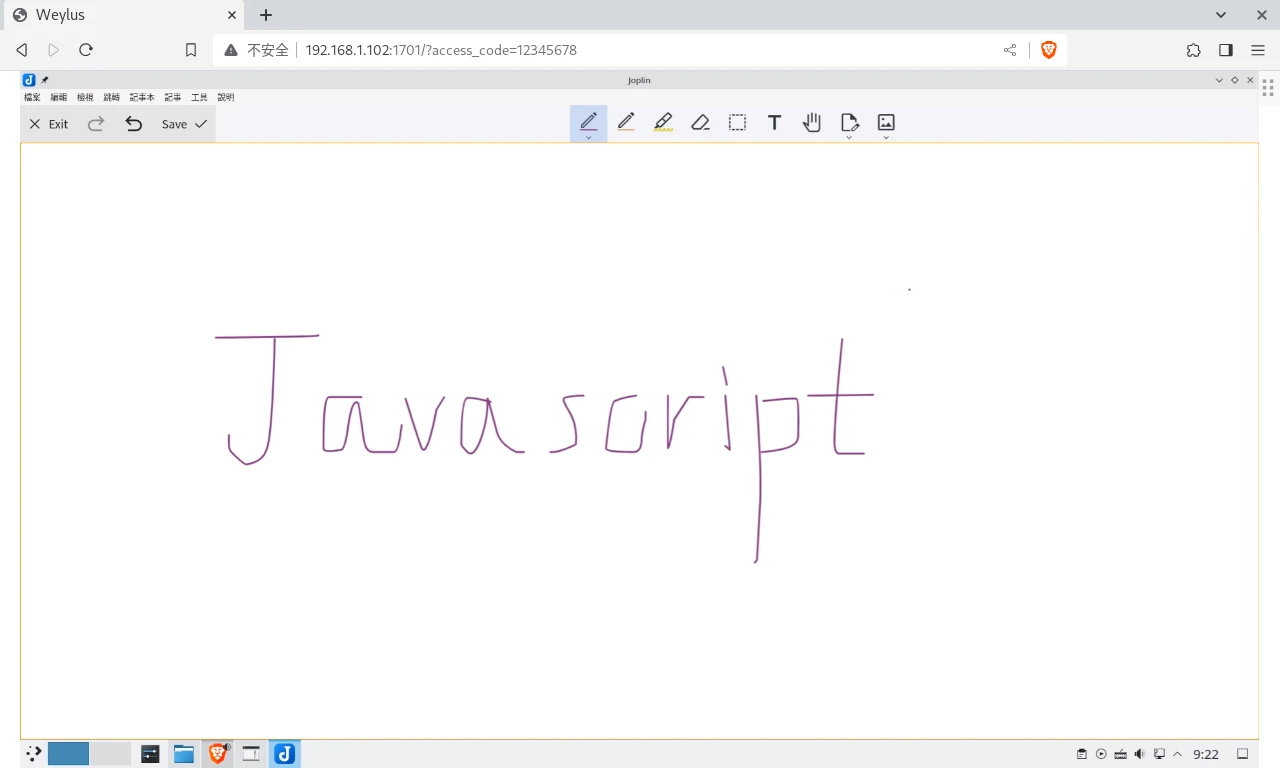下圖為我使用Joplin的Freehand Drawing延伸模組的結果,確認可以用平板在電腦上的Joplin寫字。