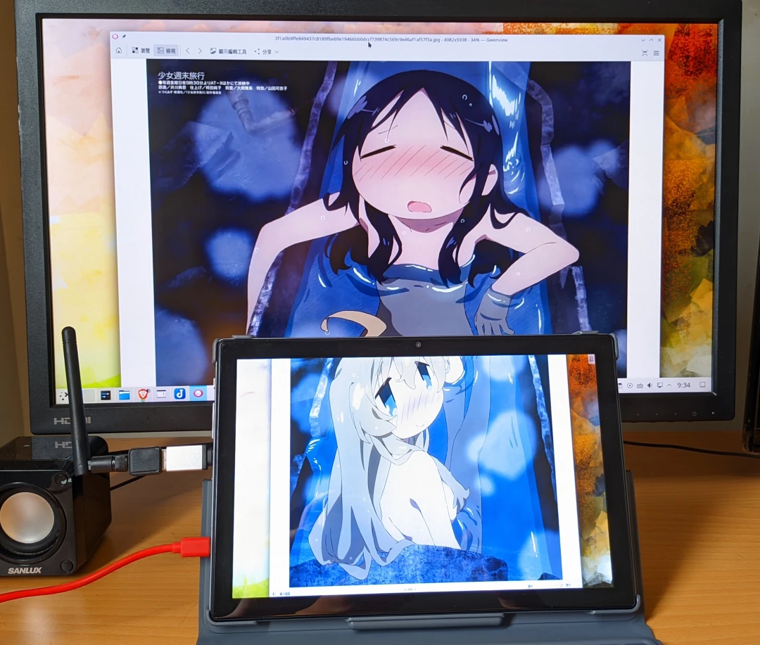- Moonlight + Sunshine:Linux跑遊戲串流伺服器,再利用本文提到的雙螢幕原理,連線到第二螢幕,支援觸控筆筆壓。Weylus並沒有針對多媒體串流最佳化,Moonlight方案更適合播放影片與玩遊戲。