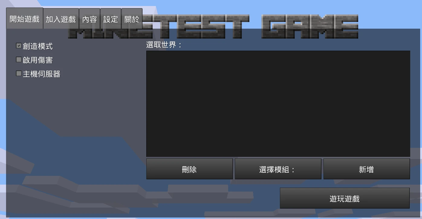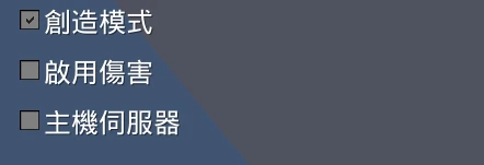 在進入世界前,左邊的選單有「創造模式」和「啟用傷害」可以選。