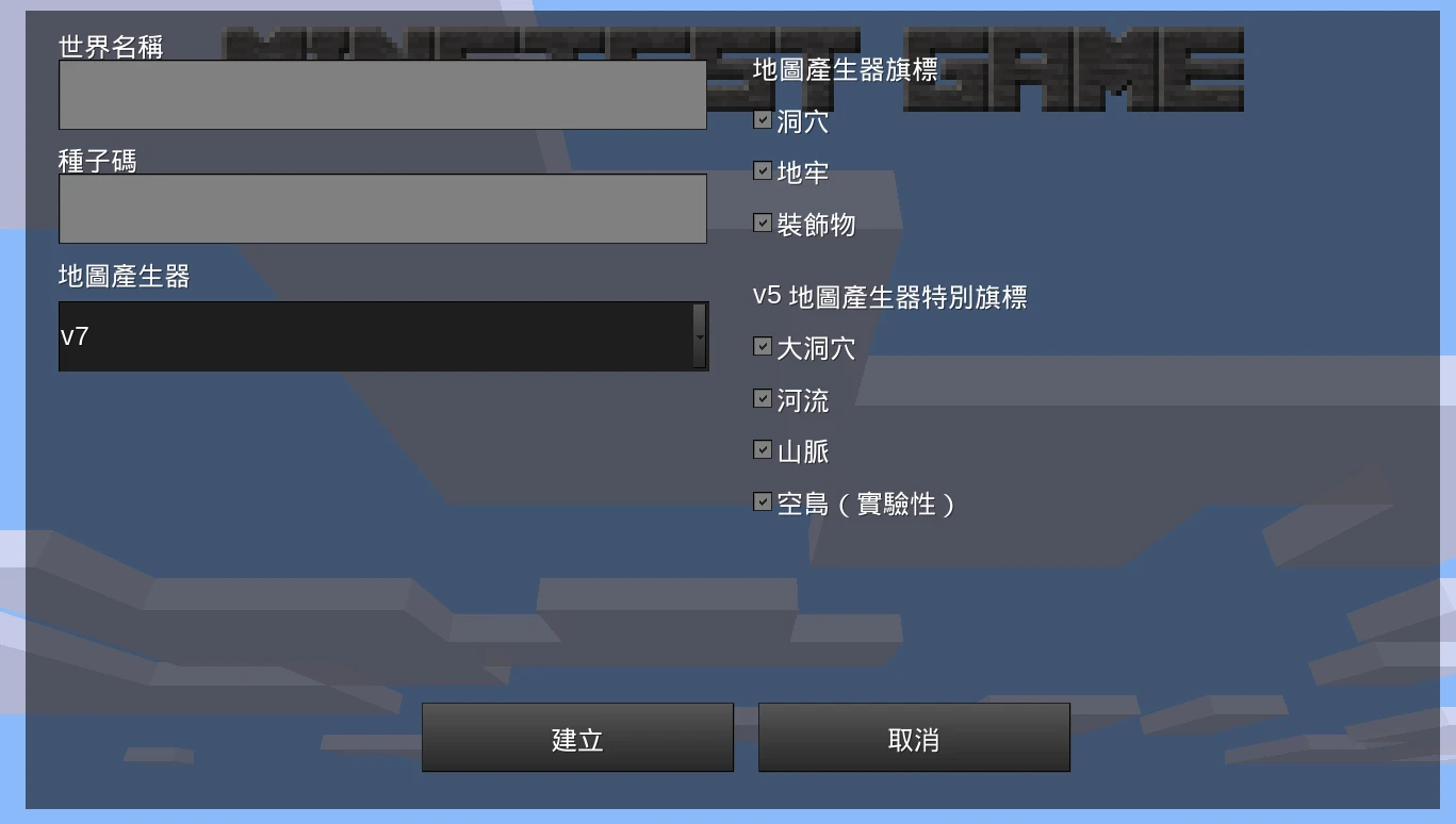 有很多地圖產生器可以選擇,還有填寫種子碼的選項。