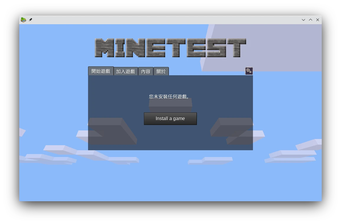 Luanti在版本5.8.0之後不再內建Minetest Game了,初次開啟是一片空白,使用者得手動到「線上內容」下載子遊戲來玩。