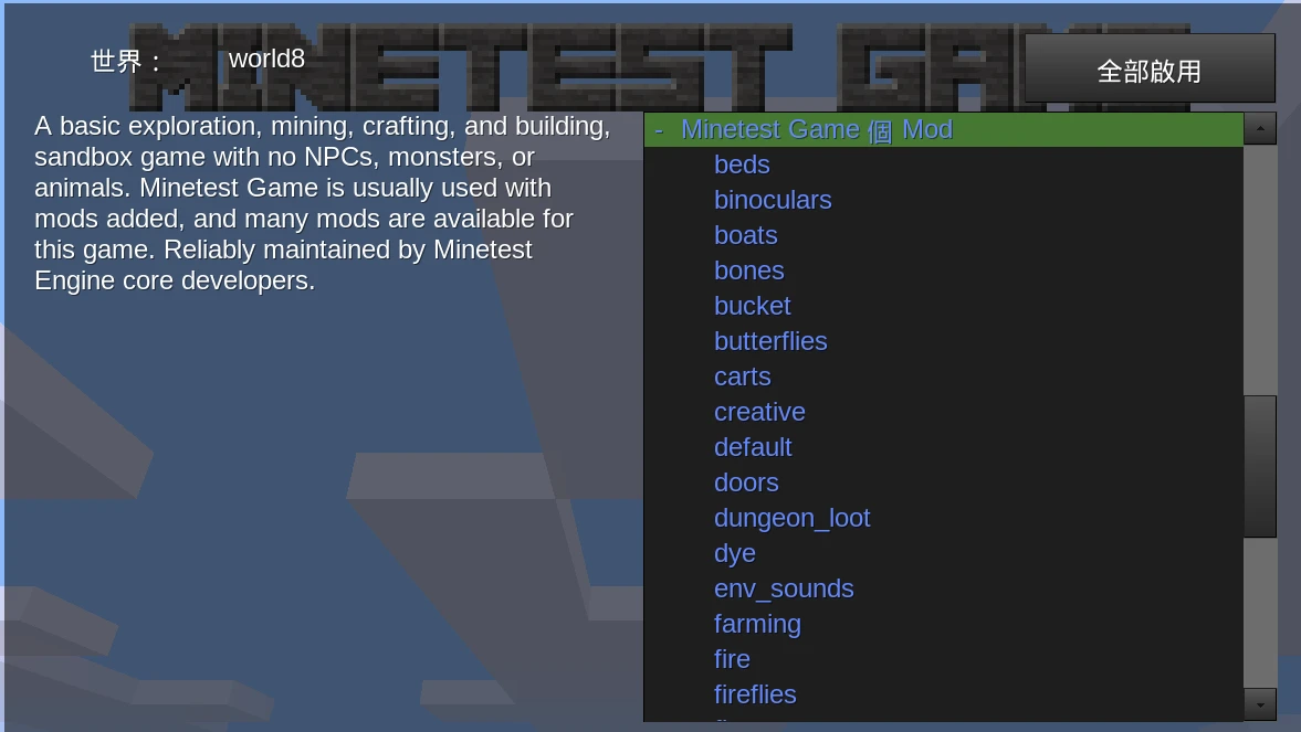 為方便溝通,我使用「Minetest基本遊戲」來稱呼Minetest Game。