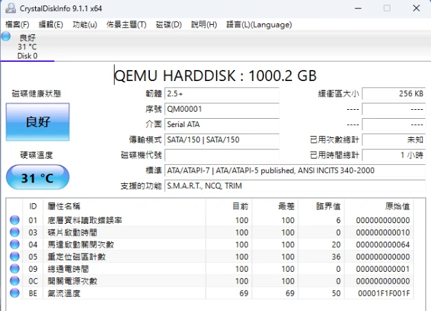 CrystalDiskInfo也能抓到一部分BTRFS硬碟的資訊。