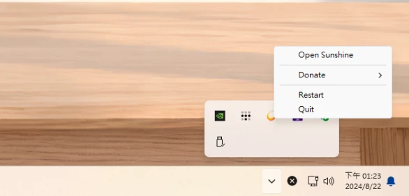 在Windows程式列表搜尋Sunshine開啟,Sunshine應該會顯示在系統匣