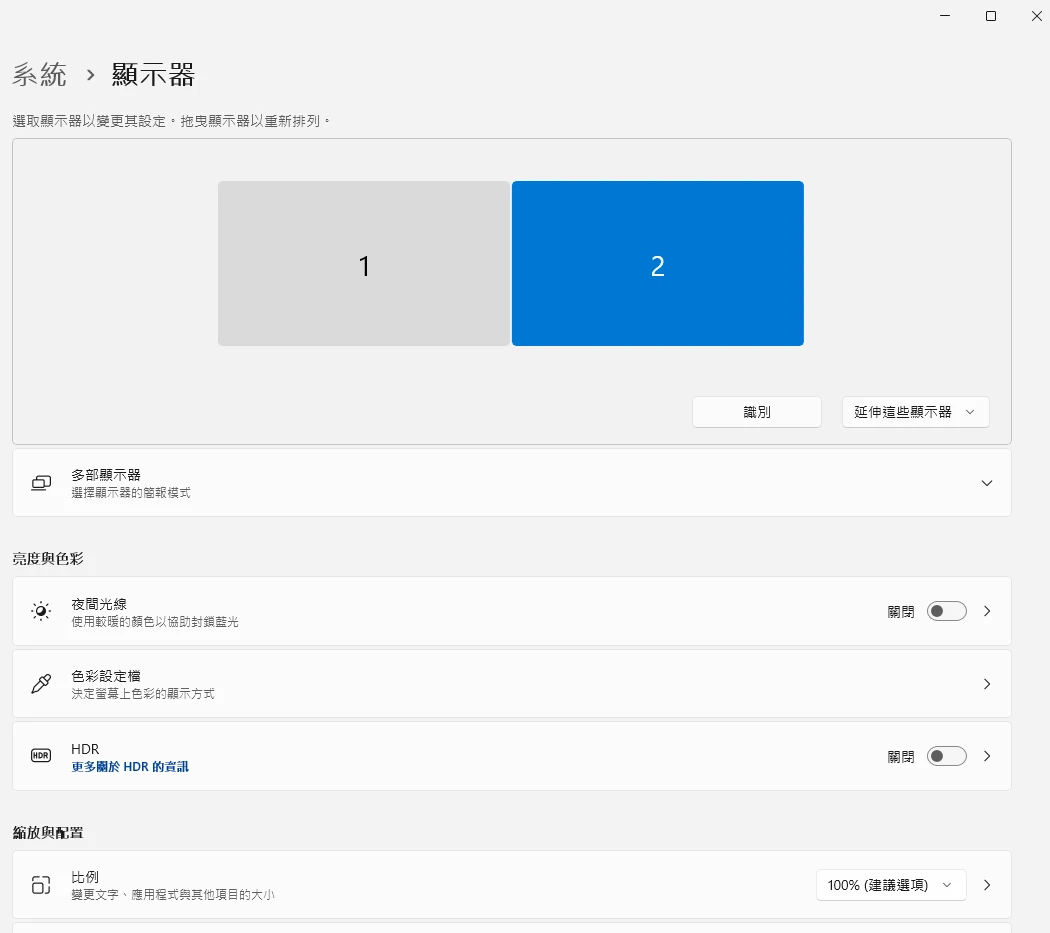 驅動安裝好之後,開啟Windows系統設定 → 顯示器,就會出現一個新螢幕了,可以調整解析度,啟用HDR。