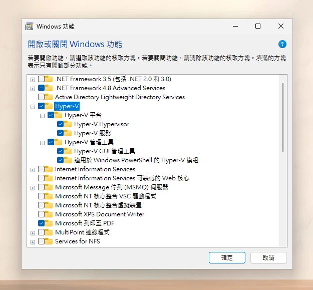 啟用Hyper-V,然後重開機。
