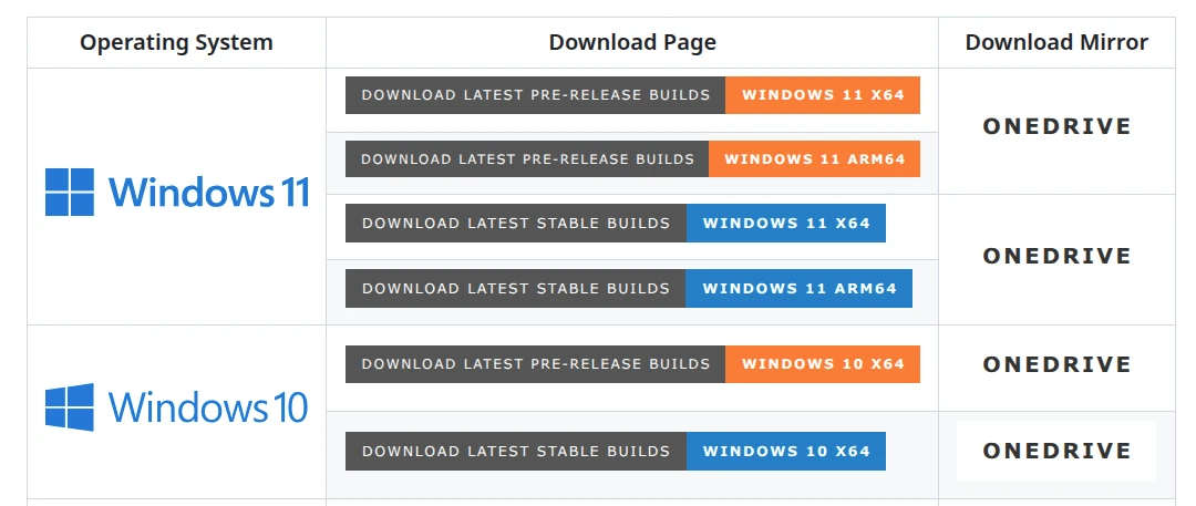 點選Windows 11表格旁邊的Download Latest Stable Builds按鈕