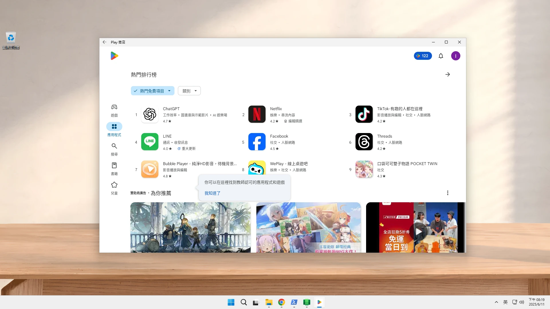 Windows端的注音輸入法可以直接在Android APP裡面使用,不用另外再裝Android的輸入法。此外,開啟URL超連結的時候,可以選擇要用WSA還是Windows exe開啟。