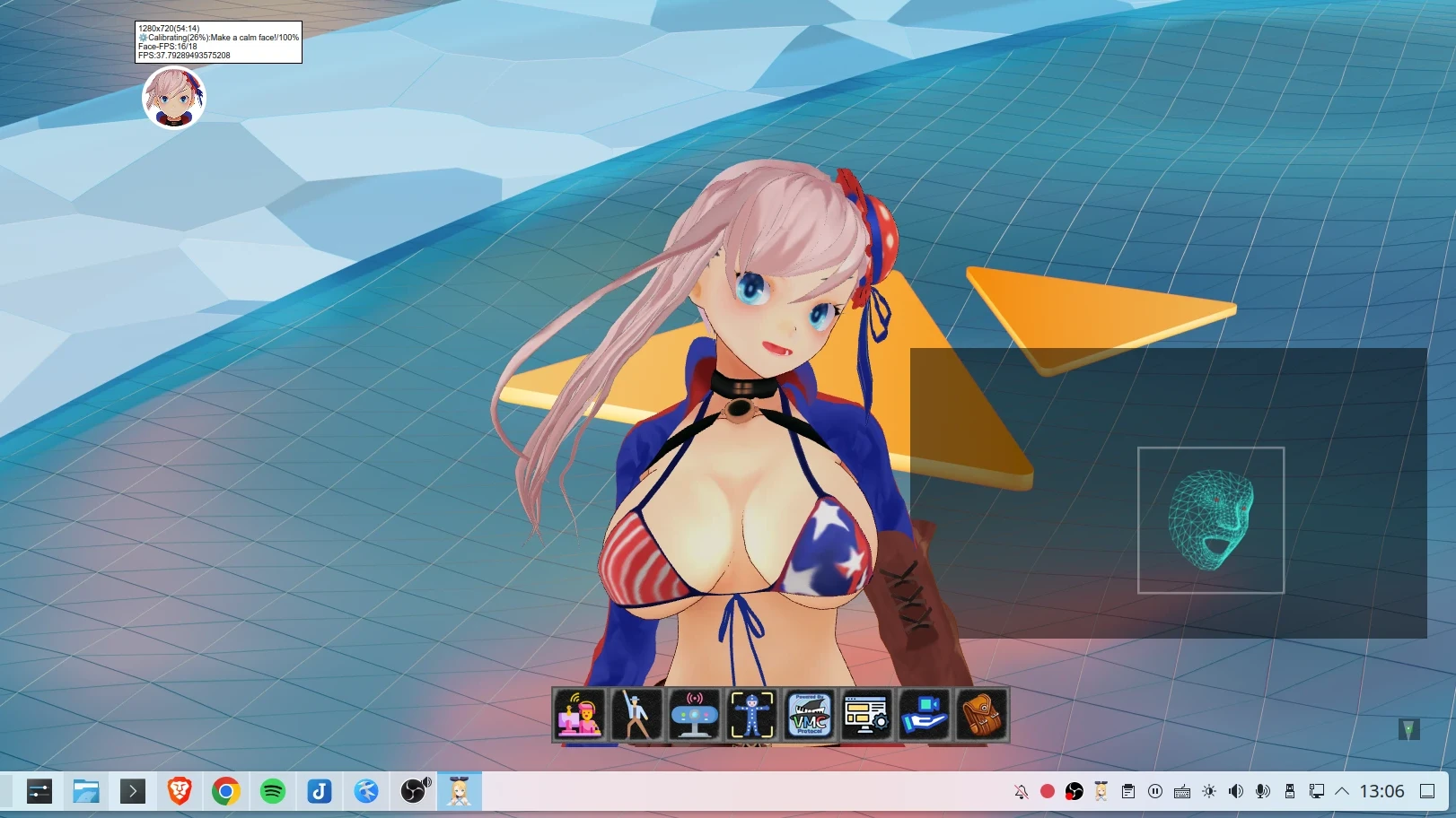 內建動態捕捉技術,能夠透過電腦鏡頭,讓3D模型跟著你的身體移動,能夠作為實況主直播時候的虛擬形象工具,算是一種廉價版VTuber吧。