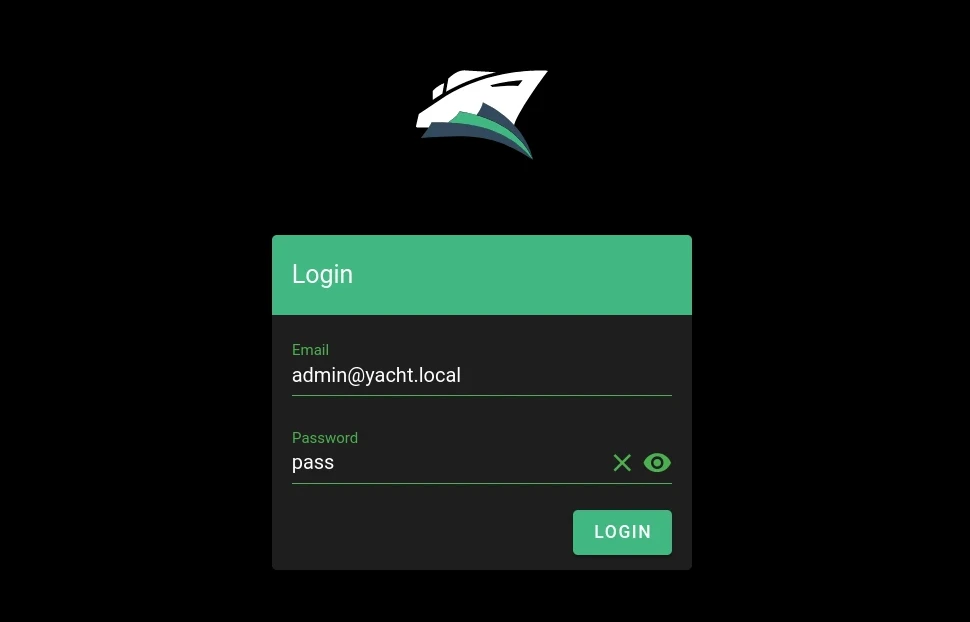 http://localhost:8000,預設帳號admin@yacht.local,預設密碼pass