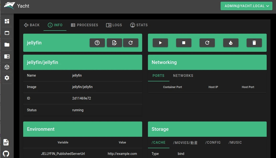 Yacht用途類似Portainer,都是方便管理容器用的,減少打指令的次數。同樣地不是所有操作都能用網頁解決,如果要偵錯,您還是需要用到Docker指令完成。Yacht僅是輔助,實際上還是要先懂Docker指令操作才會用得比較好。