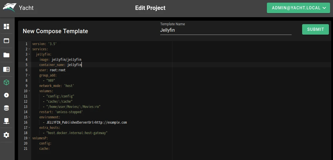 Yacht提供網頁管理界面,能夠撰寫docker-compose、查看正在運作的服務,並隨時更新映像檔。