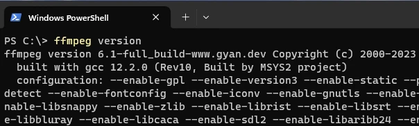 ffmpeg -version看有沒有跳出版本資訊,有的話就是設定成功了。