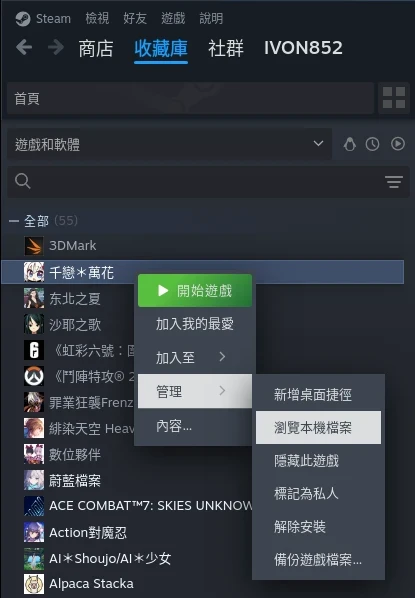 在下載遊戲後,在收藏庫點選右鍵 → 內容 → 相容性,選取Proton 9.0。或是透過ProtonUp-QT切換為GE-Proton 9.25版本。實際測試,《千戀萬花》需要用GE-Proton 9.25。《魔女的夜宴》要用Proton 9.0。